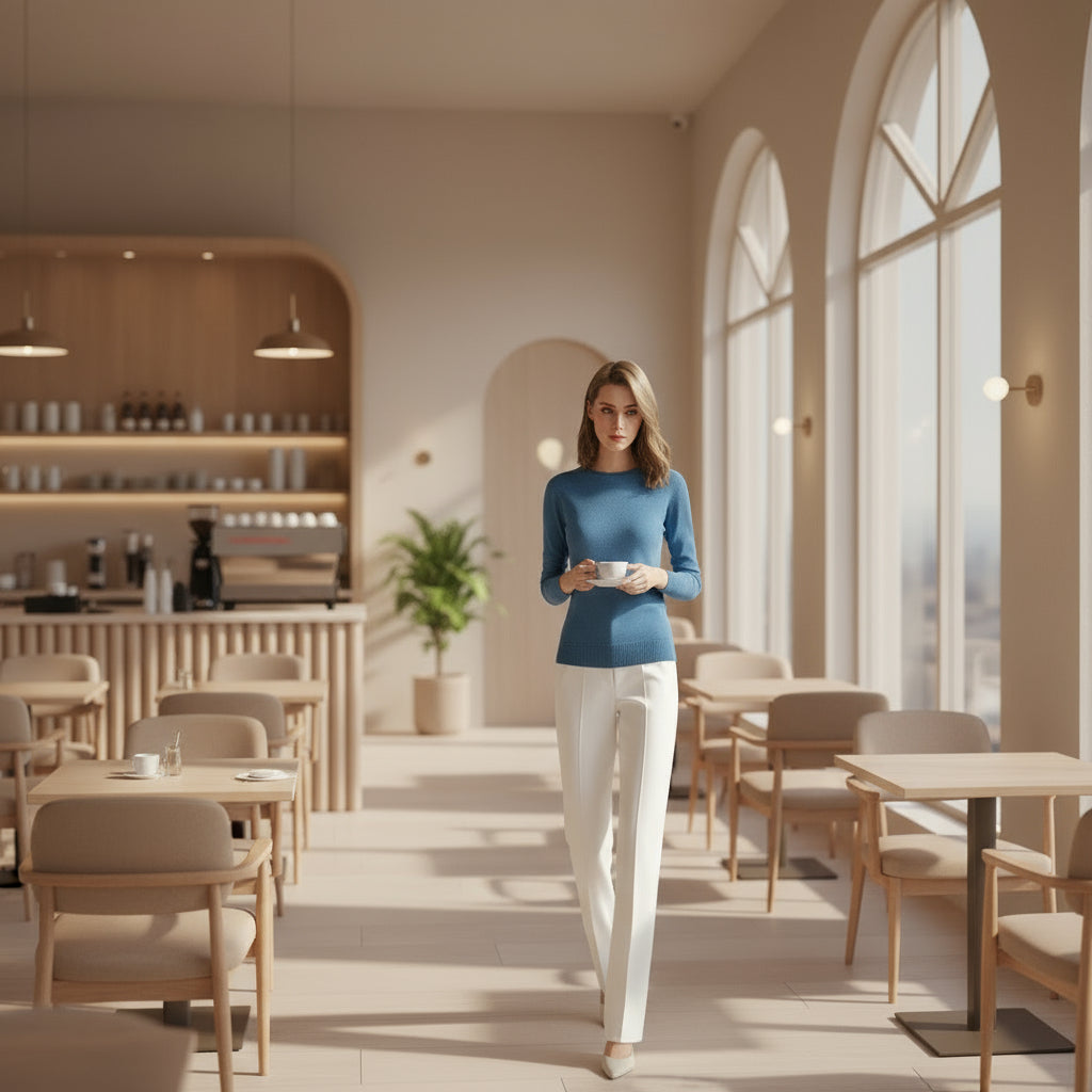 Sanfte Eleganz für kühlere Tage. Der Arwen Sweater ist aus einer hochwertigen Kaschmir-Woll-Mischung gefertigt und bietet Wärme ohne Gewicht. Mit seiner schmalen Passform, dem klassischen Rundhalsausschnitt und der glatten Strickverarbeitung ist er ein zeitloses Essential, das für Komfort und dezente Eleganz im Herbst und Winter konzipiert wurde.